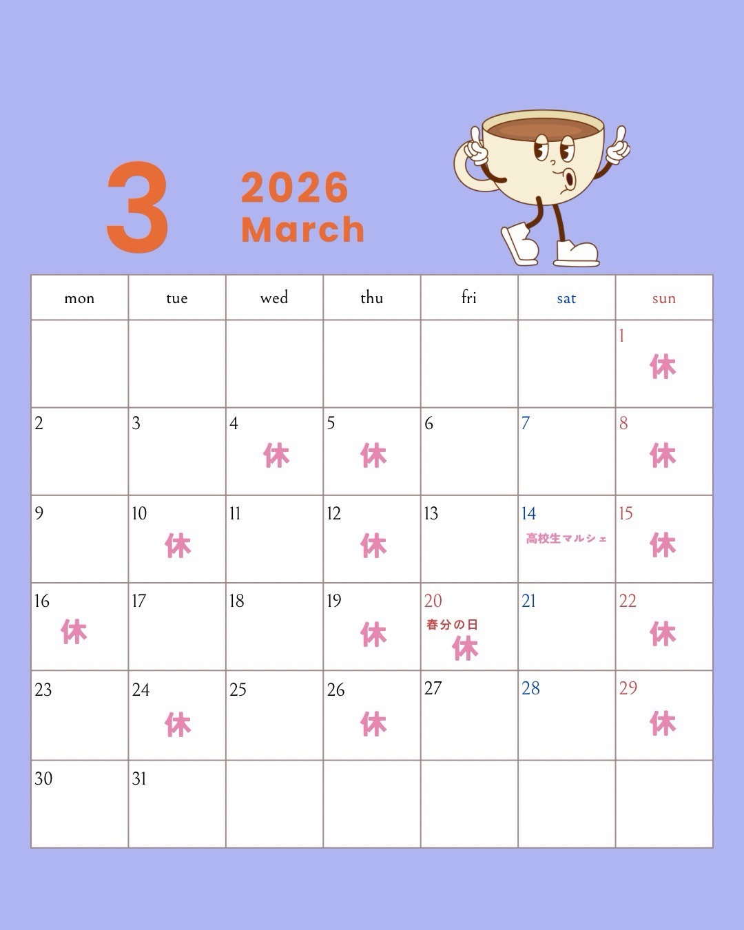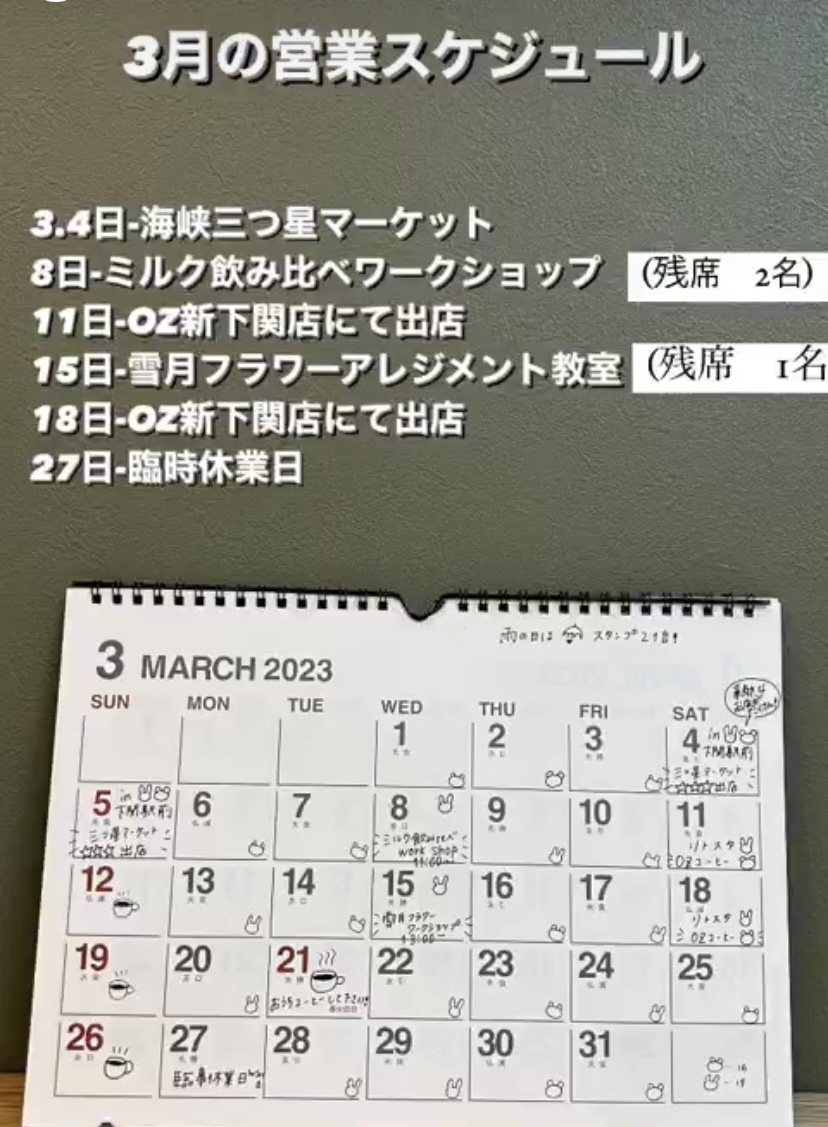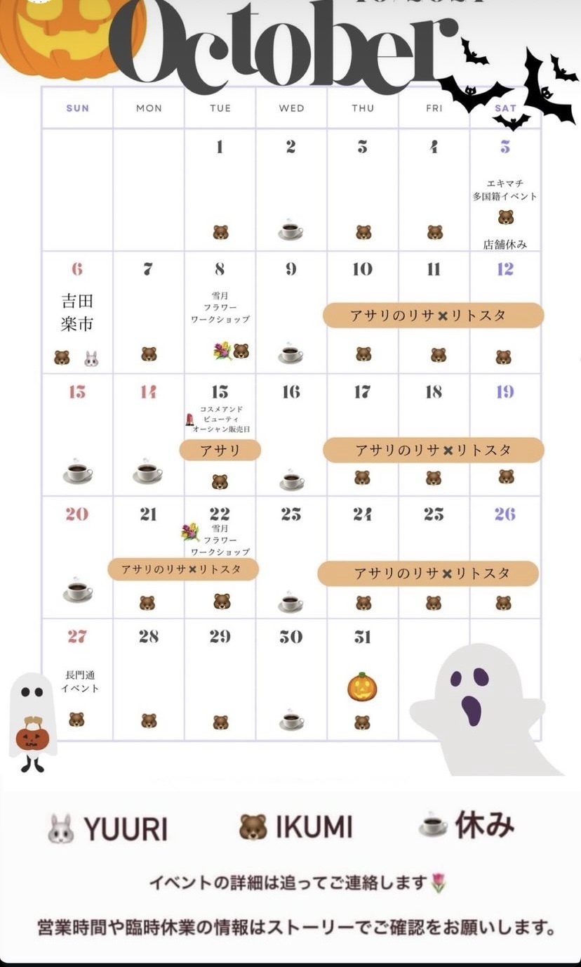 店舗休み…1日、4日、8日、10日、12日、15日、16日、19日、20日、22日、24日、26日、29日