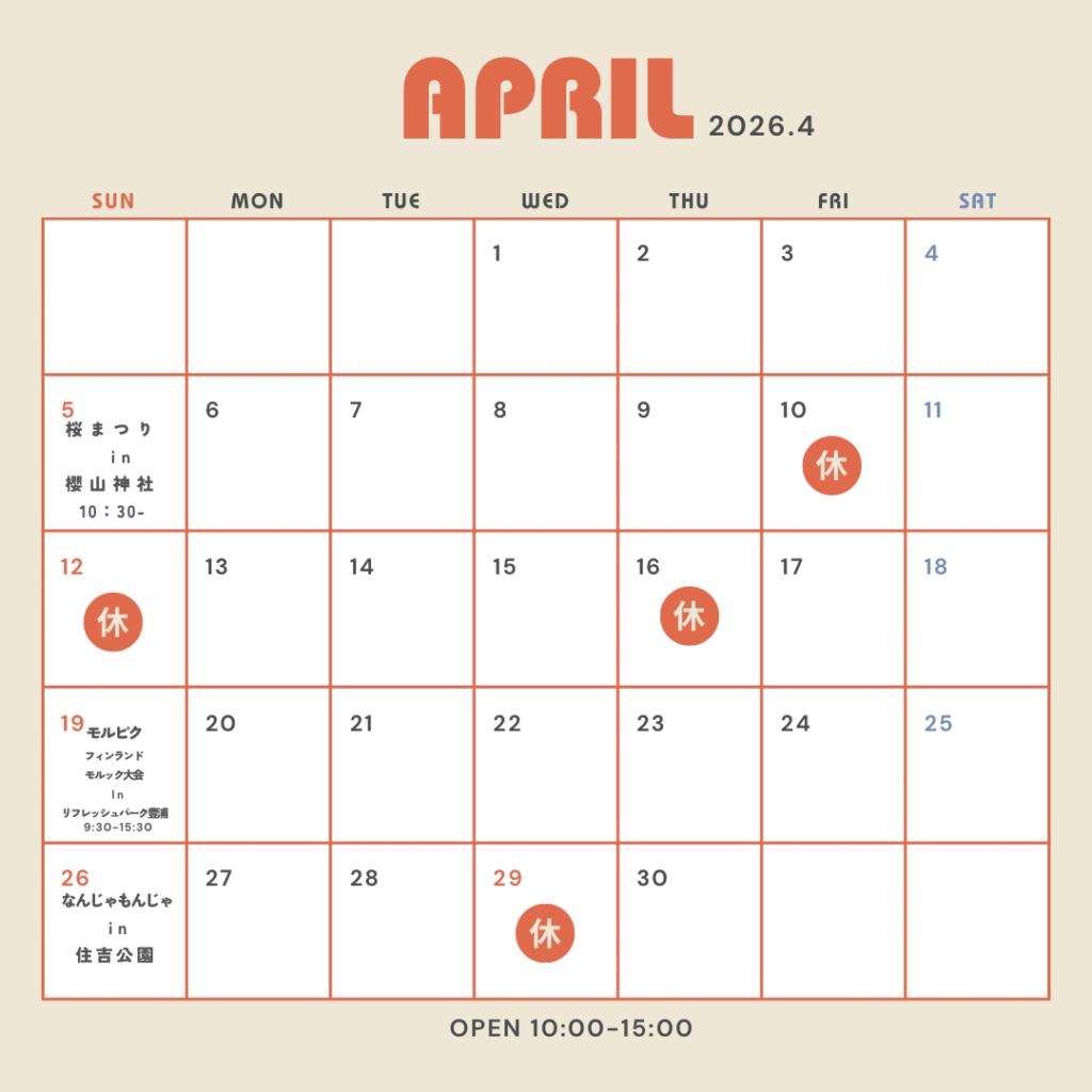 店舗休み…5日、10日、12日、16日、19日、26日、29日