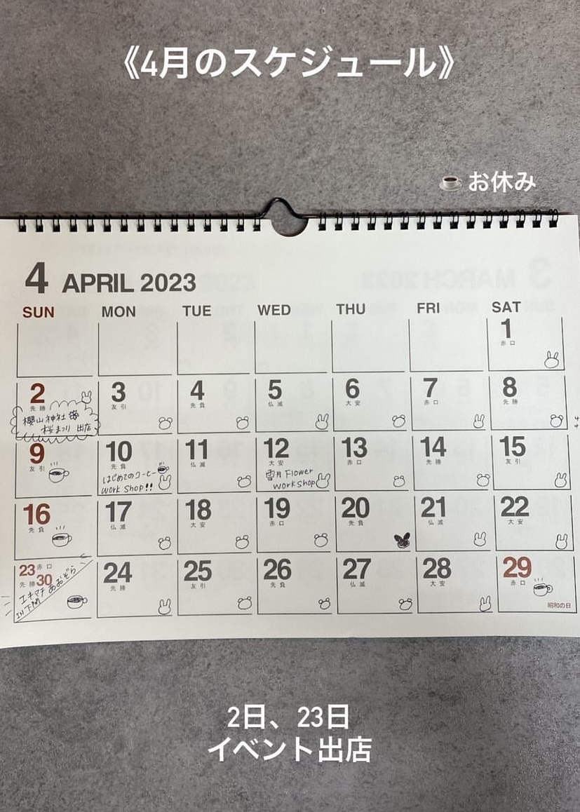 営業時間、営業日、イベント出店の詳細や変更など、詳しくはInstagramにてお知らせいたします。