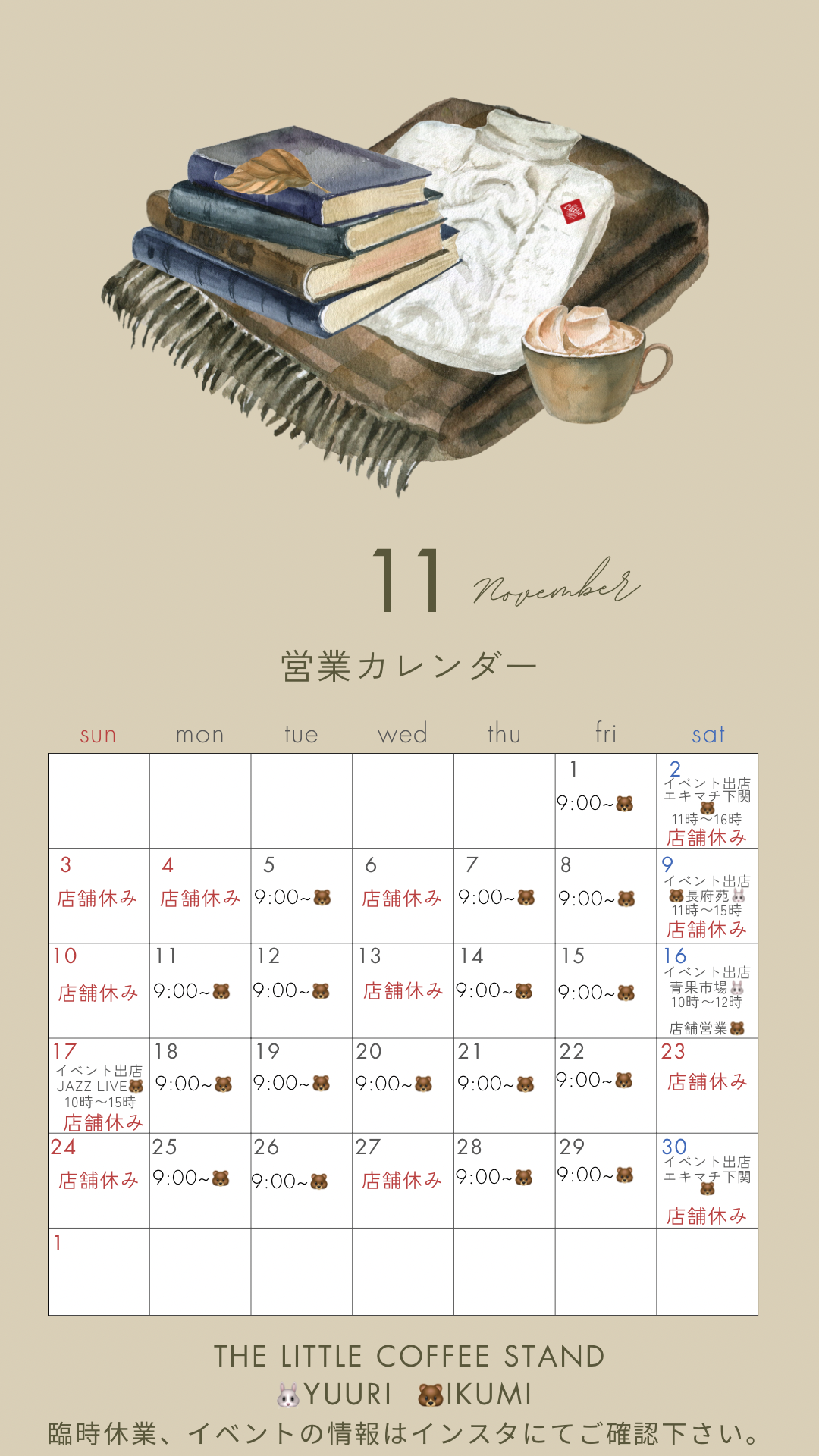 リトスタ 11月の営業について
