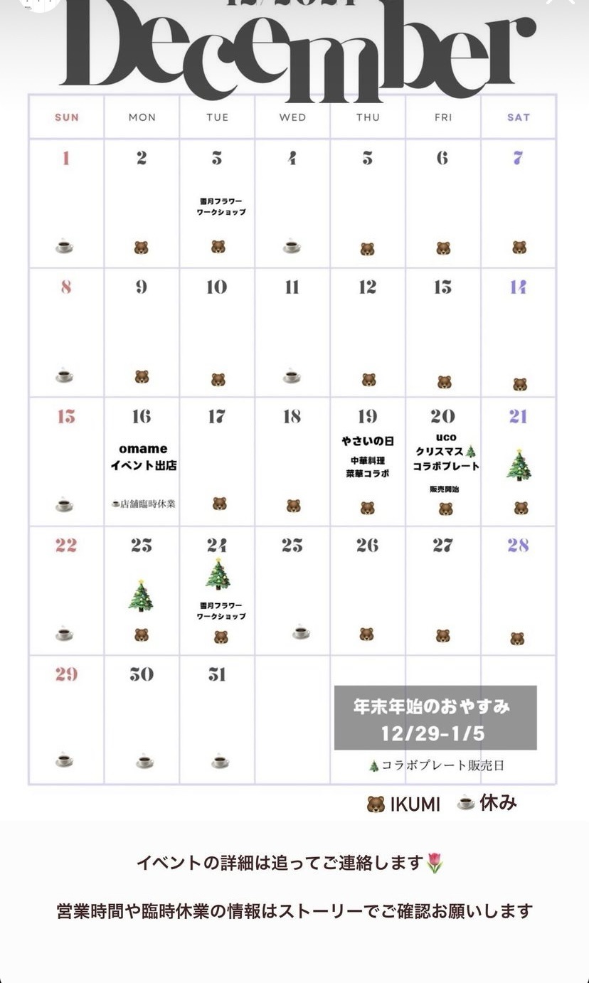 リトスタ 12月の営業日について