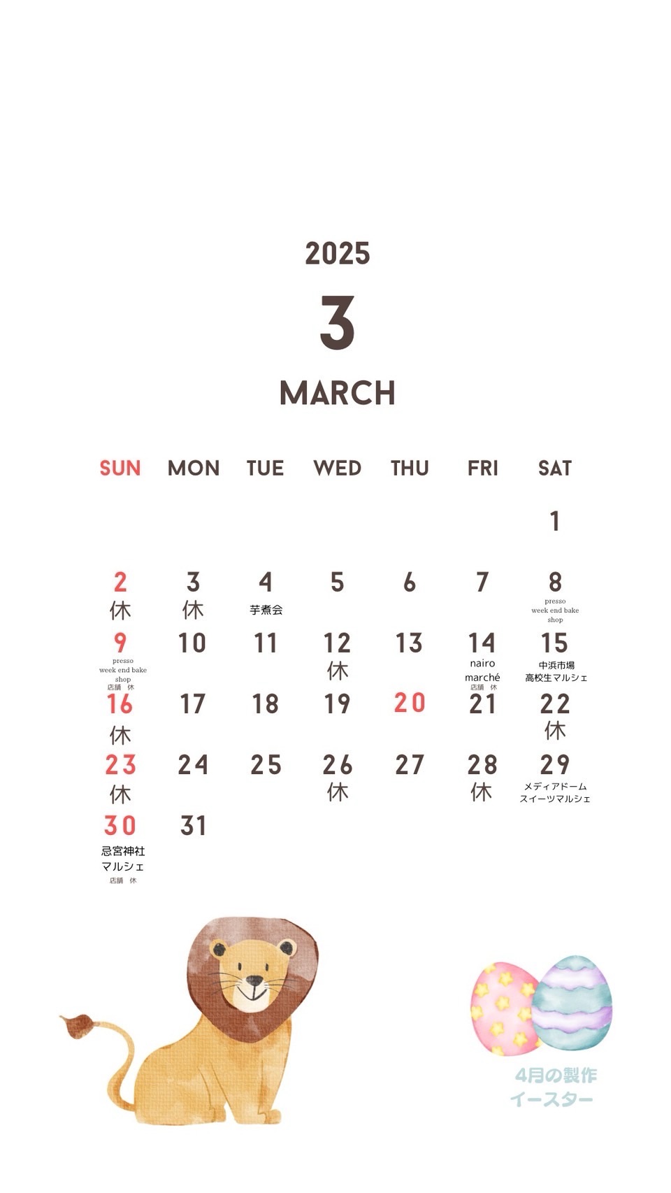 リトスタ 3月の営業日について