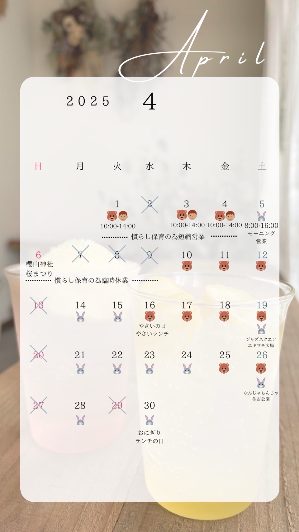 リトスタ 4月の営業日について