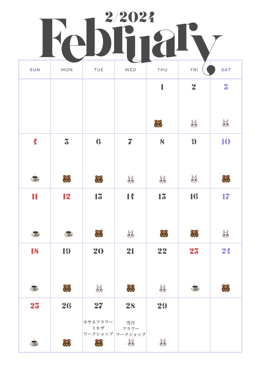 リトスタ 2月の営業日について