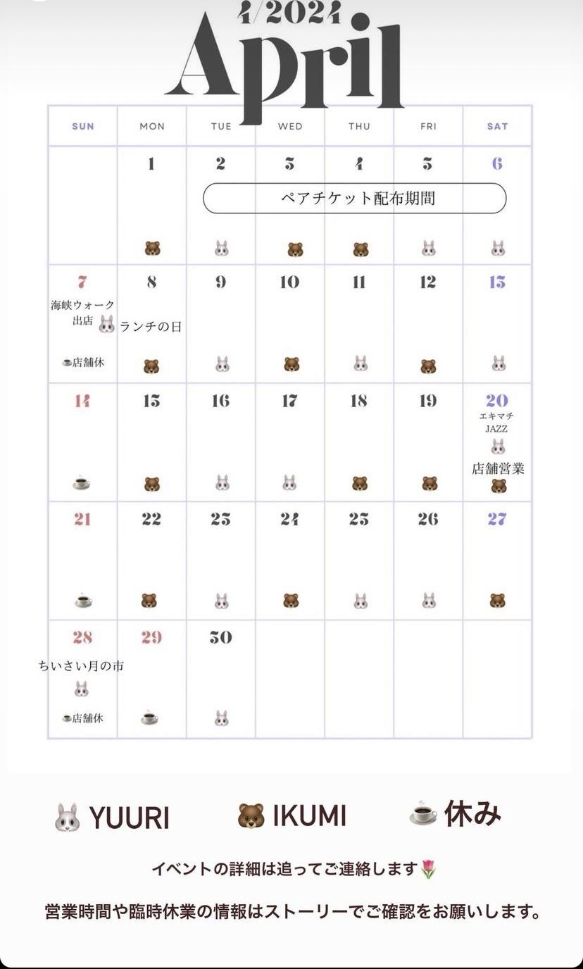 リトスタ 4月の営業日について