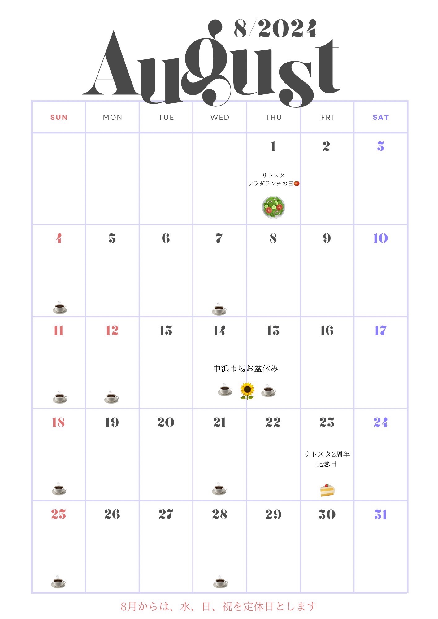 リトスタ 7月の営業日について‼️